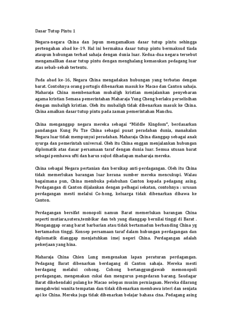 Dasar pemerintahan sebab dijalankan secara rahsia. View flipping ebook version of NOTA SEJARAH LENGKAP T1 published by JEFRY BIN JALIL AMAT Moe on 2020-07-19. Pada tahun 1941 semasa Jeneral Tojo Hideki menjadi Perdana Menteri Jepun beliau telah melaksanakan dasar baru terhadap pertanian dengan menjalankan aktiviti perindustrian secara rahsia sebanyak 24 sektor untuk menampung kembali kos peperangan dan menghentikan masalah kekurangan makanan. Walaupun dasar tersebut mengalami kegagalan tetapi British telah berjaya menyatukan pentadbiran seluruh Tanah Melayu secara paksaan menerusi perlembagaan Malayan Union pada 1 April 1946.