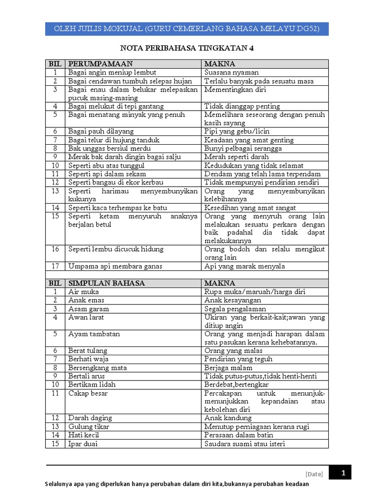 Nota Peribahasa Tingkatan 4 Bil Perumpamaan Makna Oleh Juilis Mokujal Guru Cemerlang Bahasa Melayu Dg52 Pdf